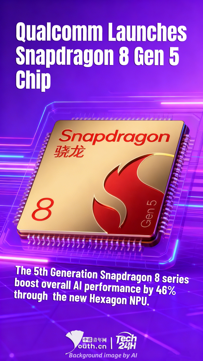 【#Tech24H】On November 26, Qualcomm officially launched the 5th Generation Snapdragon 8 chip (Snapdragon 8 Gen 5). Building on Qualcomm’s latest architecture, the Snapdragon 8 Gen5 matches the Snapdragon 8 Elite Gen 5 (released in September) in several key metrics. This also marks the first time the Snapdragon 8 Series has featured two chips within a single generation. While the architectures of the two SoCs are similar, the standard edition features underclocked CPU and GPU components compared to the Snapdragon 8 Elite Gen 5, alongside new integrated modules. The 5th Generation Snapdragon 8 series boost overall AI performance by 46% through the new Hexagon NPU. The Snapdragon 8 Gen 5 supports multimodal generative AI, processing diverse inputs like voice, text, and video. Users can activate the smart assistant simply by picking up their phone and speaking, with no wake word required.