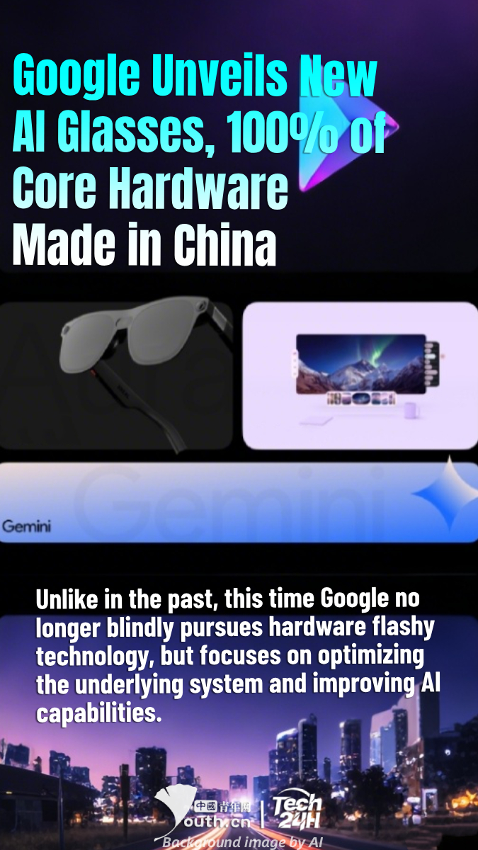 【#Tech24H】More than a decade after launching Google Glass glasses, Google is once again launching AI glasses. Unlike in the past, this time Google no longer blindly pursues hardware flashy technology, but focuses on optimizing the underlying system and improving AI capabilities. At The Android Show held on December 9th, Google unveiled key details of its Project Aura product and Android XR system for the first time, stating that this product is the most complete and closest hardware sample to the ideal form of Android XR to date. Project Aura is an AI glasses jointly developed by Google and Chinese company XREAL, featuring Google's self-developed multimodal artificial intelligence model Gemini.