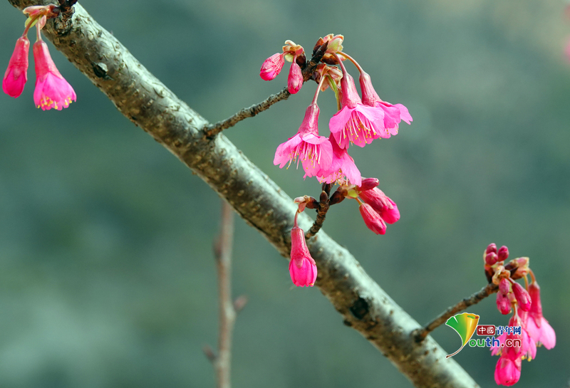 On January 22, 2026, Yichang, Hubei. Along Fazhan Avenue in Yiling District, mountain cherry blossoms in the green belts are gradually blooming, beautifying the streets. Photo/CFP
