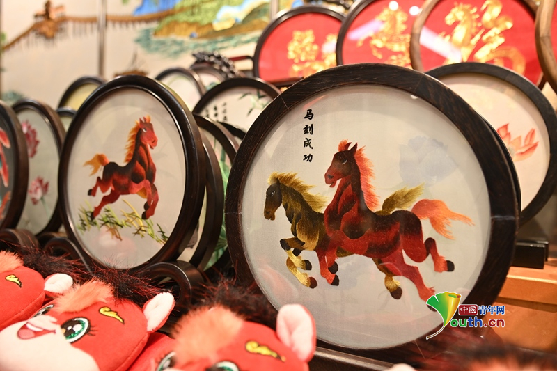 Beijing, January 30 (Youth.cn) - On January 28, 2026, at a workshop in the ancient town of Ciqikou, Shapingba District, Chongqing, tourists were purchasing innovative cultural and creative products for the Year of the Horse. These products uniquely combine Shu embroidery and random-stitch embroidery, both forms of intangible cultural heritage. As the Spring Festival approaches, various horse-themed intangible cultural heritage creative products are flourishing across Chongqing, with a wide array of items featuring horse motifs available. Photo/CFP