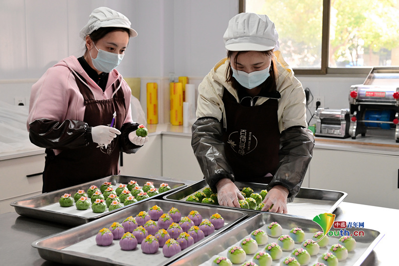 Beijing, March 17 (Youth.cn) - On March 15, 2026, Wucheng District, Jinhua City, Zhejiang Province. The inheritor of the intangible cultural heritage of Qingmingguo (Sweet Green Rice Balls) is busy fulfilling orders for creative artistic Qingmingguo. As the Qingming Festival approaches, the inheritor combines traditional skills with cultural creativity, infusing seasonal delicacies with cultural elements, which has won great favor among consumers. Photo/CFP