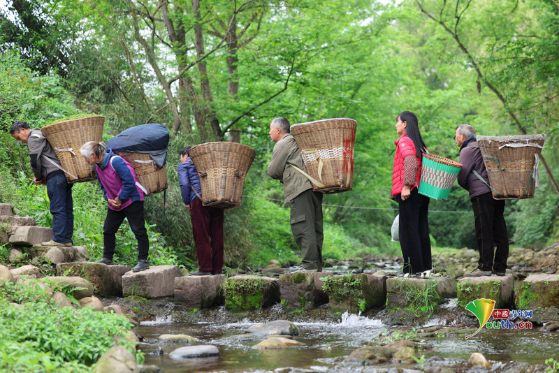 Beijing, April 2 (Youth.cn) - On April 1, 2026, ahead of the Qingming Festival, tea farmers in Mingshan District, Ya'an City, Sichuan Province, were busy rushing to harvest Mingqian tea. Farmers carried baskets of freshly picked leaves across a river on their backs to reach the market, a scene locally described as "spring crossing the river". Photo/CFP