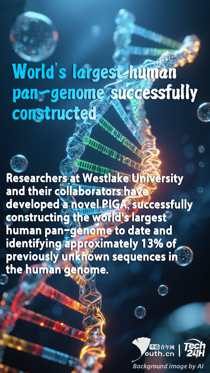 【#Tech24H】The human genome completed in 2003 contained numerous blind spots and struggled to account for genetic variations among individuals. Researchers at Westlake University and their collaborators have developed a novel PIGA (Pangenome Integrated Genome Assembly?), successfully constructing the world's largest human pan-genome to date and identifying approximately 13% of previously unknown sequences in the human genome. Within these newly discovered sequences, the team identified 26.2 million base pairs of functional genes and regulatory elements that guide protein synthesis and control gene expression. They also produced the most detailed map of human genetic variation to date, covering 35.4 million small variants, and deciphered a large number of complex variants such as difficult-to-detect structural variants, tandem repeats, and nested variants. Furthermore, the team pinpointed 3,256 key complex variants that regulate gene expression, providing an important foundation for genetic diagnosis of diseases.