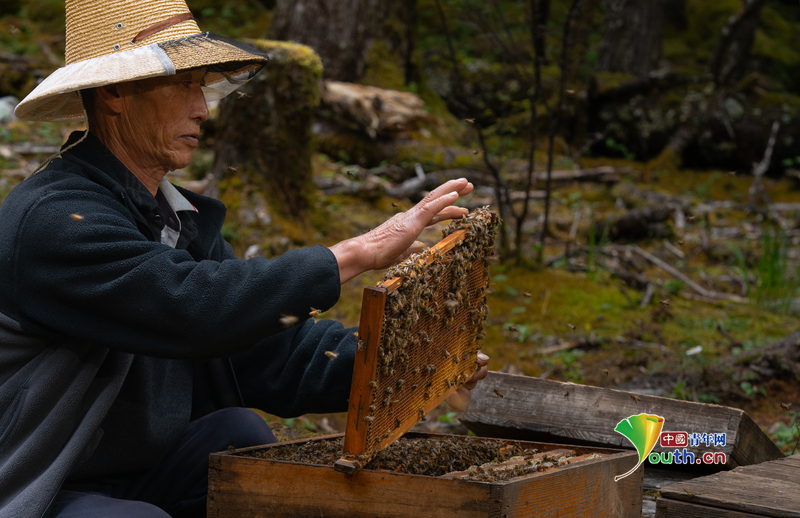 Beijing, April 8 (Youth.cn) - On April 4, 2026, in Diqing Tibetan Autonomous Prefecture, Yunnan Province, beekeepers deep in the mountains followed the natural instincts of Chinese honeybees. They placed beehives among the pristine forests, carefully inspecting the colonies and adjusting combs with light, gentle hands, thus brewing a rich, raw honey that gathers the fragrance of a hundred wild mountain flowers. Photo/CFP