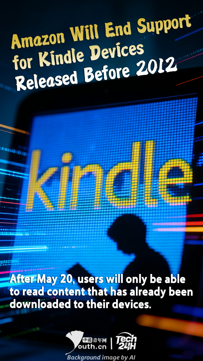 【#Tech24H】Amazon will stop providing technical support for Kindle devices released before 2012 as of May 20, 2026. These devices will no longer be able to access the Kindle Store, and will be largely unable to load any new content, meaning affected devices will no longer be able to directly purchase, borrow, or download new books. After May 20, users will only be able to read content that has already been downloaded to their devices. If an older device is deregistered or factory reset, it will not be able to be re-registered or reactivated after May 20. According to reports, Amazon has sent notification emails to affected users.