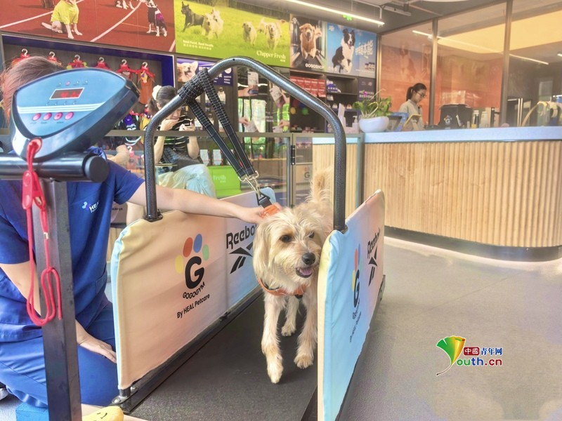 Beijing, April 15 (Youth.cn) - On April 14, 2026, in Shanghai, a pet dog swam in a pool with the help of a coach. As the "pet economy" heats up, the pet market is diversifying, and emerging services such as pet gyms are gaining attention. Photo/CFP